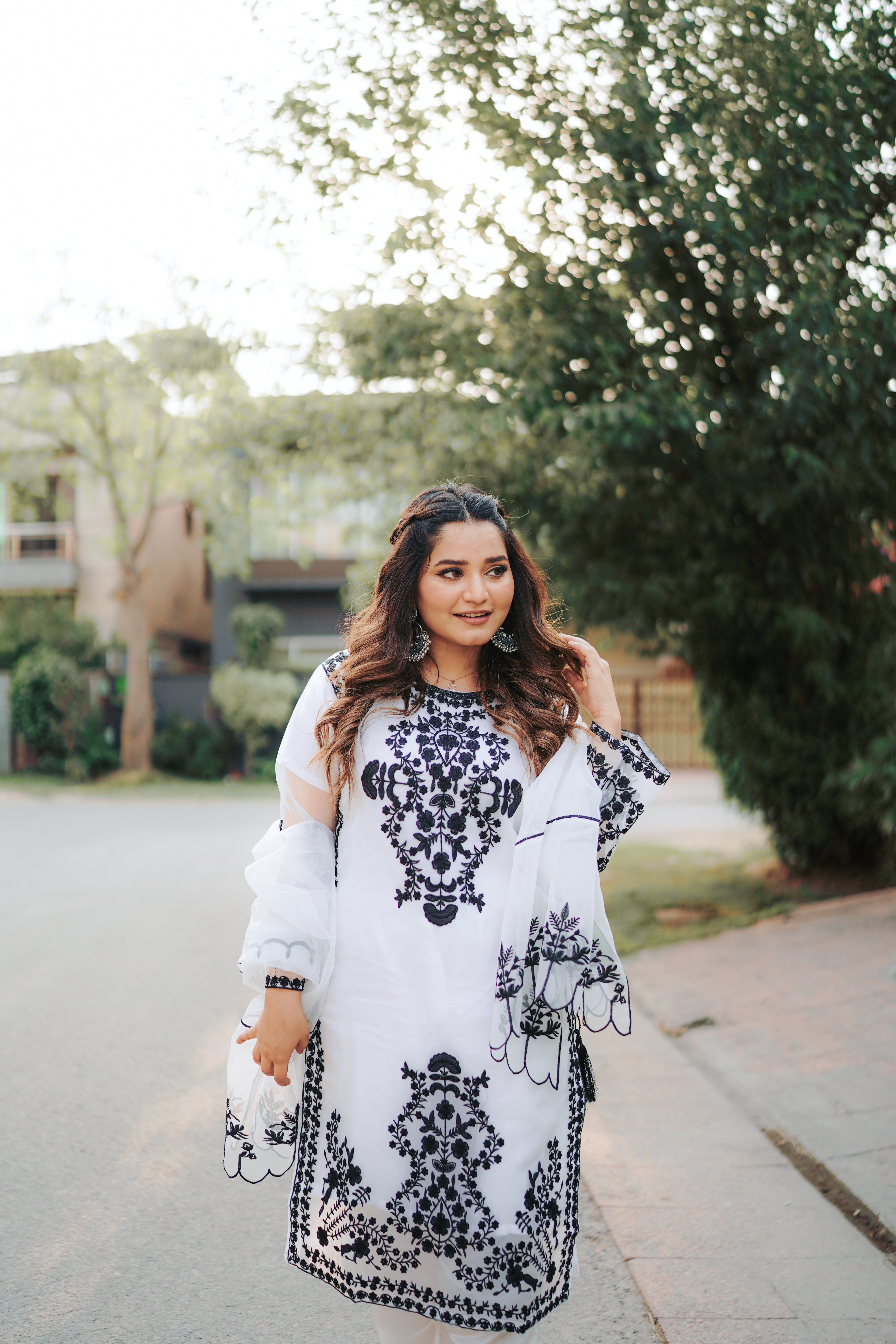 Experience timeless elegance with our Jasmine Organza 3PCs Stitched set. The inner and trouser are crafted from luxurious silk katan, while the shirt outer is made from high-quality organza. Perfect for any occasion, this set exudes sophistication and style.