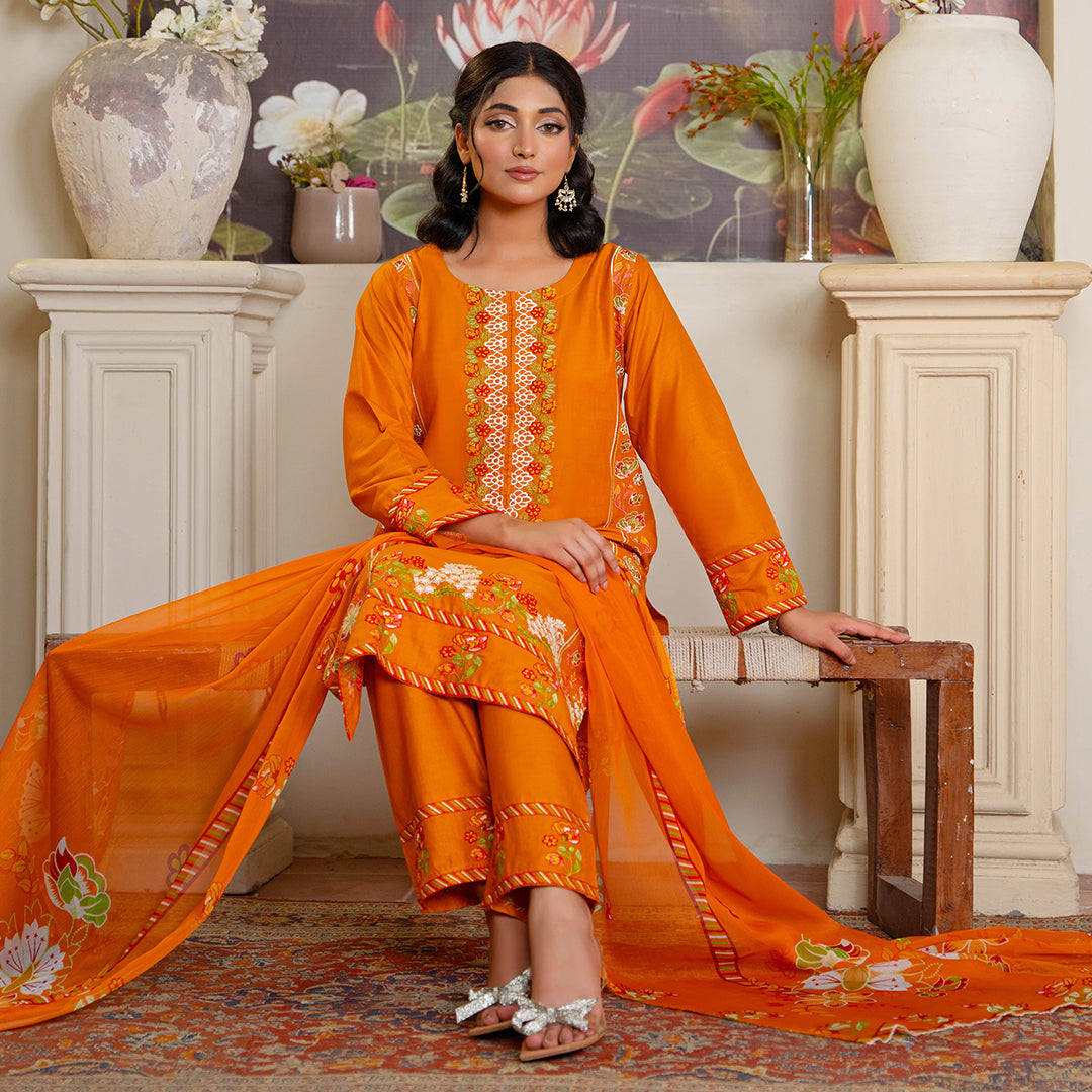 This Mustard Hill Stitched 3Pcs set features high-quality cotton fabric, ensuring comfort and breathability. Designed specifically for women, the stitched dress offers a perfect fit with meticulous tailoring. Ideal for everyday wear or casual occasions, this ensemble combines style with practicality, making it a versatile addition to your wardrobe.